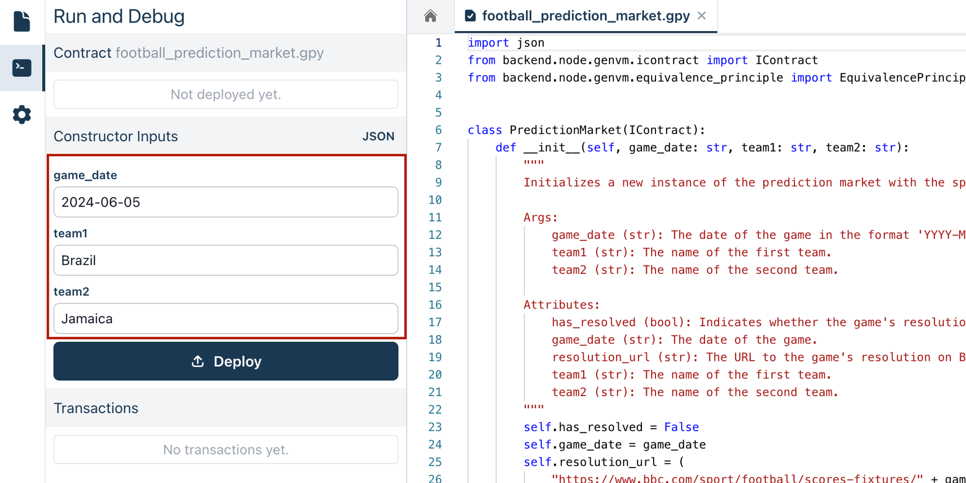 2. Once the game details are set, deploy the contract to make it ready to interact and resolve the game results.